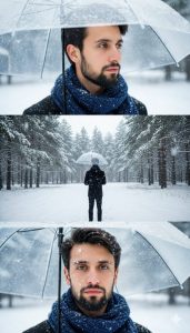 The latest viral craze in the AI community is the cinematic winter triptych photo trend — a three-panel vertical portrait style that looks like a Netflix movie poster. These images show the same person in three different angles or scenes, giving a dramatic storytelling effect.